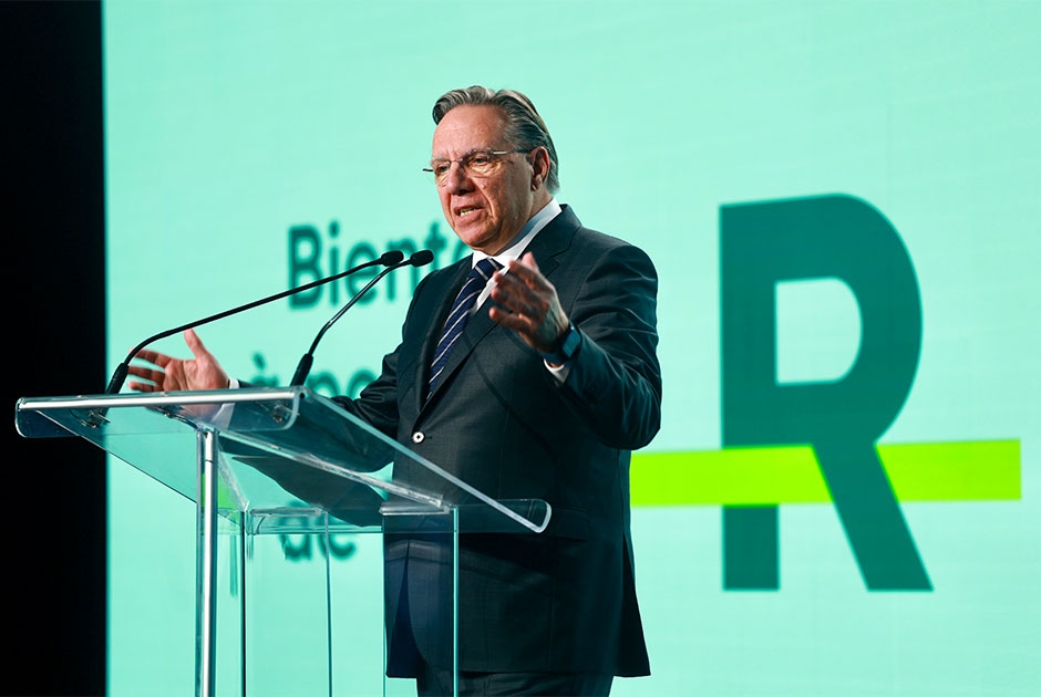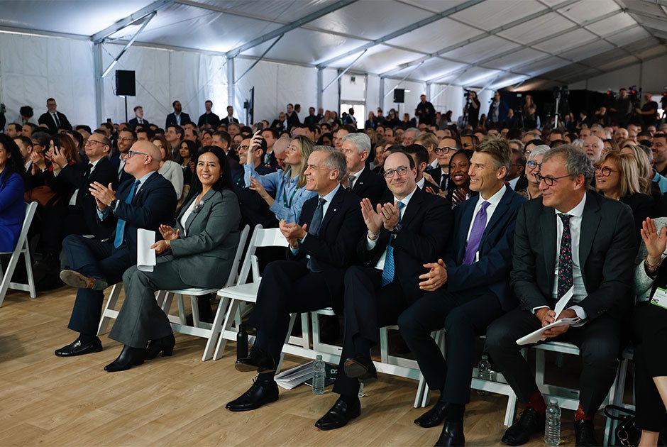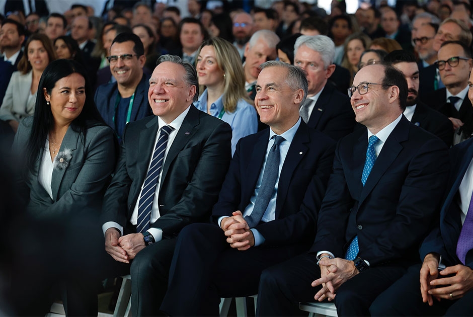 Official Ceremony. From left to right: Soraya Martinez Ferrada, Mayor of Montréal; François Legault, Premier of Québec; Mark Carney, Prime Minister of Canada; and Charles Émond, President and Chief Executive Officer of La Caisse.
