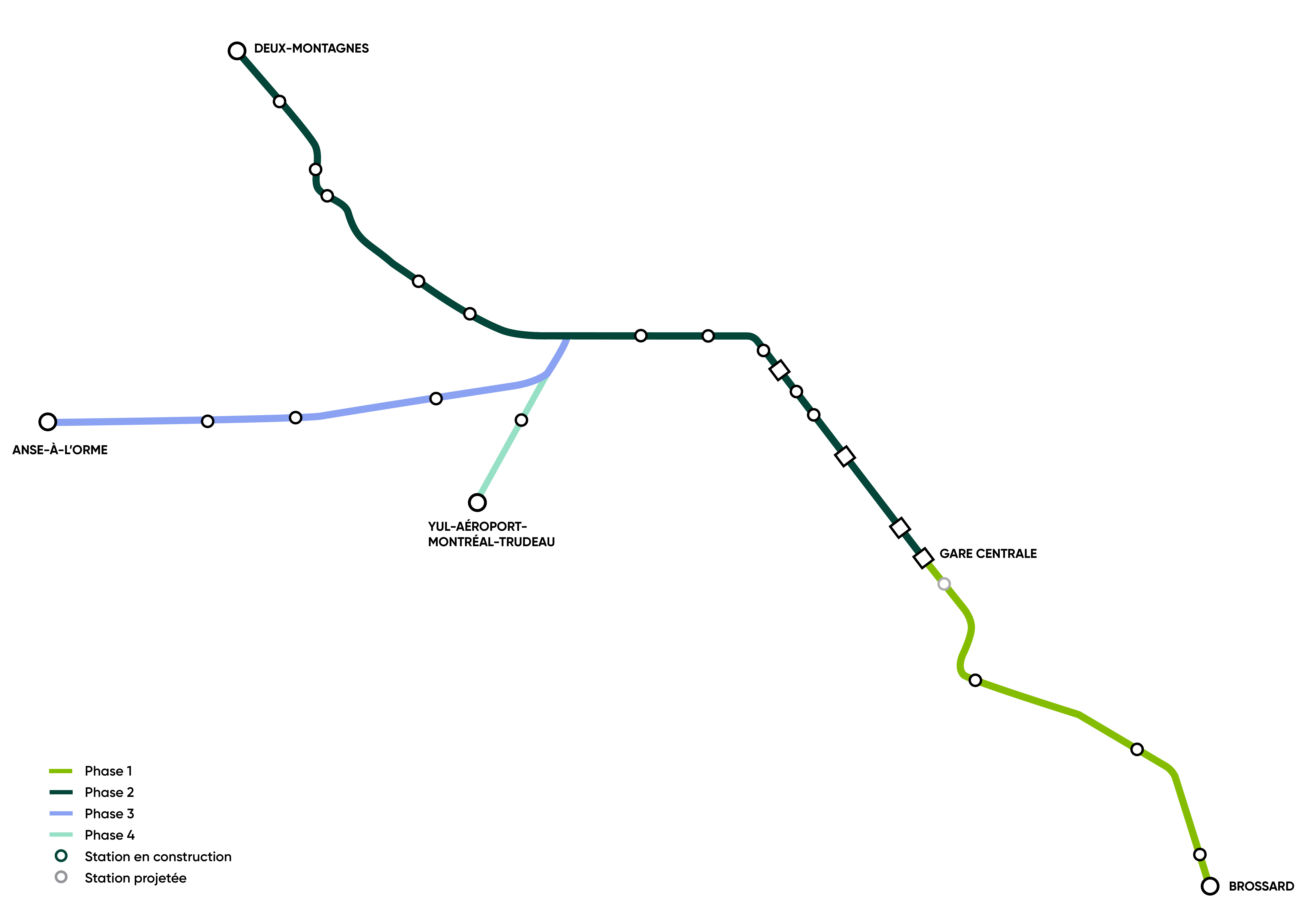 Le nouveau métro léger sera progressivement mis en service, d’abord sur la Rive-Sud (pour bien se coordonner avec la fin de la construction du nouveau pont Champlain) jusqu’à la Rive-Nord.