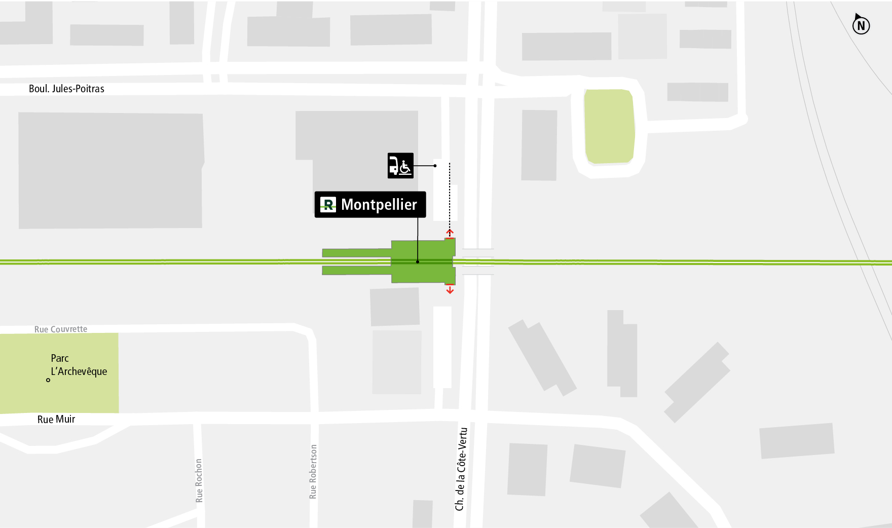 Un quai dédié pour le transport adapté est localisé près de l’entrée de la station du côté du boulevard Jules-Poitras.